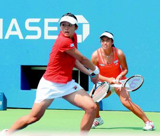 詹詠然、莊佳容自去年澳網(wǎng)開始在國際網(wǎng)壇上發(fā)光,兩人搭檔后的第一個大滿貫就成功奪銀,美網(wǎng)再度殺入決賽,雖然與冠軍金杯相隔一步,但兩人早已證明“黃金雙嬌”不是隨便玩玩,2007年以來已到手4座WTA巡回賽雙打冠軍。