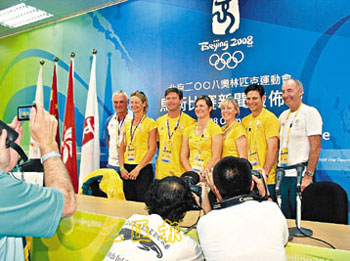 中新網(wǎng)8月6日電 據(jù)香港文匯報(bào)報(bào)道,已抵達(dá)香港準(zhǔn)備出戰(zhàn)北京奧運(yùn)馬術(shù)三項(xiàng)賽的澳大利亞隊(duì)5日在新聞中心舉行首次記者會(huì)。領(lǐng)隊(duì)漢納表示,很高興能與眾多強(qiáng)隊(duì)一同競(jìng)賽。