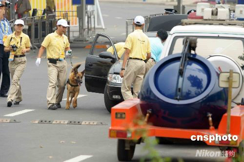 8月6日下午5點(diǎn),奧運(yùn)女足在天津“水滴”體育場將拉開戰(zhàn)幕,首場比賽阿根廷女足迎戰(zhàn)加拿大隊(duì)。圖為天津“水滴”體育場內(nèi)外加強(qiáng)安保工作。中新社發(fā) 陳文 攝