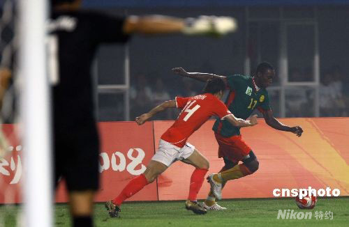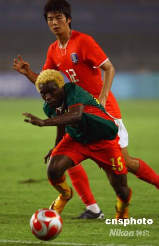 8月7日,北京奧運男子足球預賽開賽,韓國國奧迎戰(zhàn)喀麥隆隊的比賽在秦皇島奧體中心舉行。 中新社發(fā) 劉新 攝