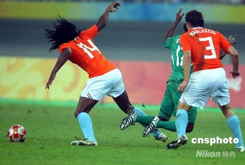 圖:奧運(yùn)男足荷蘭14號隊(duì)員被紅牌罰下場(2)