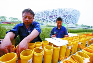 按標(biāo)準(zhǔn),用于鳥巢燃放的煙花,抽檢率高達(dá)50%,即每兩個(gè)成品出廠前,其中一個(gè)必須當(dāng)場試放。試放成品過關(guān),另一成品才能裝箱。(記者 王姝)