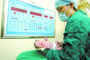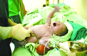 中山大學(xué)附屬第一醫(yī)院產(chǎn)科平均每天降生10個寶寶,而預(yù)訂在8日通過剖腹產(chǎn)出生的目前已有兩三個!翱傮w比較正常,沒有明顯追逐‘奧運寶寶’,很多父母還是按部就班,尤其是年輕健康、能自然生產(chǎn)的媽媽們,依然堅持‘瓜熟蒂落’! 中山大學(xué)附屬第一醫(yī)院工作人員告訴記者。