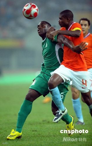 8月7日晚,在天津“水滴”體育場奧運(yùn)男足小組賽上,荷蘭與尼日利亞隊(duì)零比零戰(zhàn)平。中新社發(fā) 陳文 攝