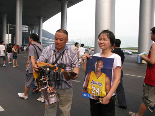 北京父女機場追科比。(美國《僑報》/孫延攝)