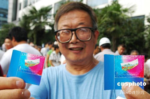 2008年8月8日,由中國(guó)郵政發(fā)行的《第29屆奧林匹克運(yùn)動(dòng)會(huì)開(kāi)幕紀(jì)念》郵票在蘇州郵政局銷(xiāo)售火爆。據(jù)了解,該套郵票1套1枚,面值1.2元,蘇州限量發(fā)行600套。 中新社發(fā) 朱子寒 攝