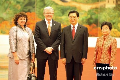 圖:胡錦濤夫婦歡迎澳大利亞總理陸克文