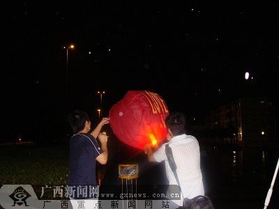 7日晚,南寧部分中學(xué)的一些學(xué)生在南寧市民生廣場舉行七夕放飛孔明燈活動,活動以“為災(zāi)區(qū)祈福、為奧運加油”為主題。筆者在民生廣場上看到,由同學(xué)們自己出資購買的150盞孔明燈被先后點燃,緩緩地飄向無邊無際的夜空,不少同學(xué)將自己的祝福與心愿寫在燈上。