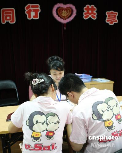8月8日北京奧運(yùn)會(huì)開幕當(dāng)天,上海迎來(lái)結(jié)婚潮,眾多新人為趕“雙喜臨門”,一早就來(lái)到民政局排隊(duì)登記結(jié)婚。 中新社發(fā) 湯彥俊 攝