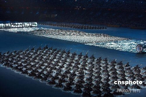 8月8日晚8時8分,第二十九屆夏季奧運會在北京的國家體育場——鳥巢隆重開幕。圖為開幕式文藝表演展現(xiàn)中國古老的活字印刷術(shù)。中新社發(fā) 任晨鳴 攝