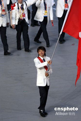 中國(guó)香港自行車(chē)名將黃金寶出任旗手。