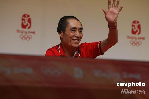 8月9日凌晨,北京奧運(yùn)會(huì)開(kāi)幕式創(chuàng)作團(tuán)隊(duì)在北京奧林匹克公園主新聞中心就開(kāi)幕式等相關(guān)問(wèn)題答記者問(wèn)。圖為總導(dǎo)演張藝謀笑答記者提問(wèn)。 中新社發(fā) 武仲林 攝