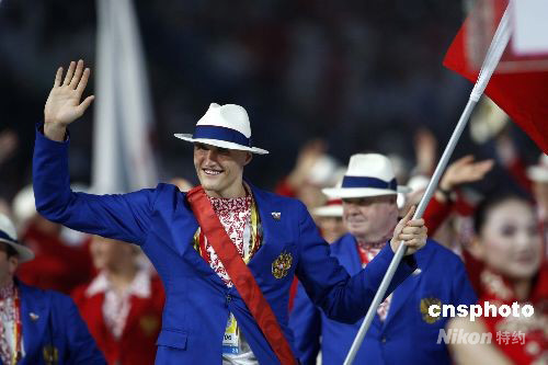 圖為俄羅斯代表團的旗手籃球運動員基里連科。中新社發(fā) 杜洋 攝