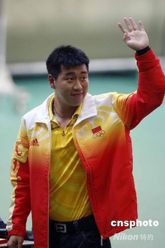 8月9日,2008年北京奧運會射擊項目比賽在北京射擊館進行的男子10米氣手槍決賽中,中國小將龐偉發(fā)揮出色,以688.2環(huán)勇奪金牌,幫助中國射擊隊贏得了本屆奧運會的首枚金牌,同時這也是中國代表團收獲的第二枚金牌。韓國選手榮國和朝鮮選手金榮洙分獲銀牌和銅牌,成績分別為684.5環(huán)和683環(huán)。 中新社發(fā) 盛佳鵬 攝