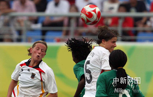 圖:北京奧運(yùn)女足德國嚴(yán)防尼日利亞進(jìn)攻