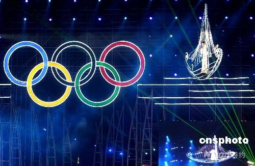 第29屆奧林匹克運(yùn)動會帆船比賽啟動儀式8月9日晚在青島舉行,來自62個國家和地區(qū)的運(yùn)動隊代表出席。藝術(shù)家乘“電動帆船”從天而降在空中進(jìn)行演唱。中新社發(fā) 趙振清 攝