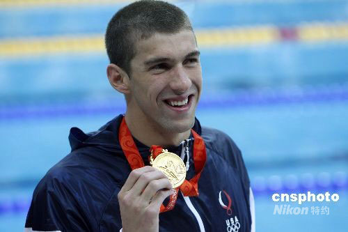 8月10日,美國選手菲爾普斯獲得北京奧運(yùn)會男子400米個人混合泳冠軍,菲爾普斯以4分3秒84打破了他個人保持的男子400米個人混合泳世界紀(jì)錄,這是北京奧運(yùn)會上第一項(xiàng)被刷新的世界紀(jì)錄。中新社發(fā) 杜洋 攝