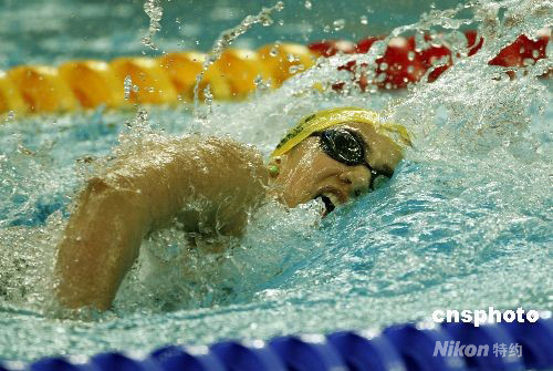 8月10日,北京奧運會女子400米個人混合泳決賽中,澳大利亞選手賴斯打破世界紀錄并獲得冠軍。賴斯創(chuàng)造的新世界紀錄為4分29秒45。原世界紀錄是美國選手霍夫在今年6月底創(chuàng)造的4分31秒12。 中新社發(fā) 杜洋 攝