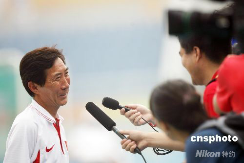 8月10日,中國(guó)女曲在奧運(yùn)會(huì)女子曲棍球小組賽首場(chǎng)比賽中以3:0戰(zhàn)勝西班牙隊(duì)。圖為中國(guó)隊(duì)主教練金昶伯賽后笑逐顏開。 中新社發(fā) 武仲林 攝