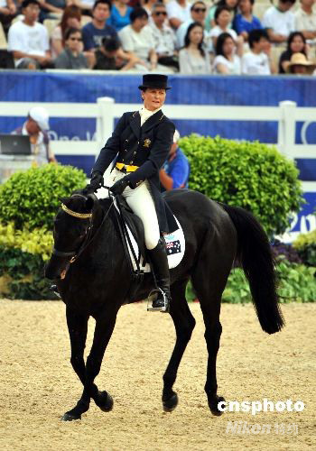 八月十日,北京奧運馬術(shù)三項賽個人賽之盛裝舞步環(huán)節(jié)的賽事在香港沙田奧馬賽場結(jié)束。澳大利亞馬術(shù)隊在這一環(huán)節(jié)積分暫時領(lǐng)先。中新社發(fā) 鄧慶樂 攝
