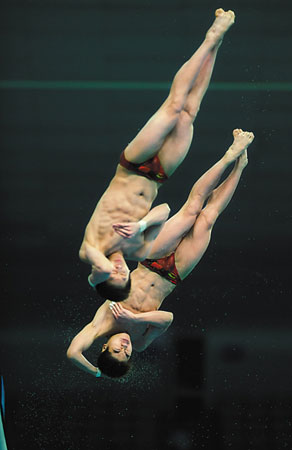 在2007年贏得世錦賽冠軍時,林躍/火亮組合的4個自選動作難度系數(shù)總和為13.3,當(dāng)時總分為489.48分。其中,裁判在比賽過程中共出示了18個10分滿分,可見兩人實力之強大。在今年2月“好運北京”第16屆跳水世界杯賽上,兩人再次折桂。不同的是,這次他們將原本壓軸的307C調(diào)整到倒數(shù)第二跳,將壓軸跳留給了難度系數(shù)高達(dá)3.8的5255B。這樣一來,難度只有3.3的207C被取代,兩人的難度系數(shù)總和也上升到13.8,在世界跳壇尚難有其他組合能夠比肩!