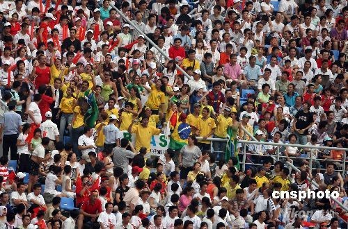 8月10日,北京奧運(yùn)會(huì)沈陽足球分賽場舉行男足預(yù)賽,因中國隊(duì)、巴西隊(duì)分別出戰(zhàn),場內(nèi)坐無虛席。中新社發(fā) 張宇 攝