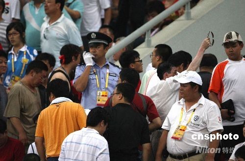 圖為中國隊失兩球,少兩名隊員的情況下,球迷提前退場。中新社發(fā) 張宇 攝