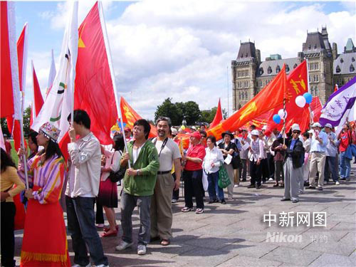 演出結(jié)束后游行開始,三組形態(tài)各異的獅子生龍活虎地在隊(duì)伍前面引路,身穿少數(shù)民族服裝的朋友高舉“同一個(gè)世界,同一個(gè)夢(mèng)想!”的橫幅緊隨其后,接著是彩旗儀仗隊(duì),幾十面奧運(yùn)五環(huán)旗、北京奧運(yùn)會(huì)旗及加中兩國(guó)國(guó)旗迎風(fēng)招展。人們揮動(dòng)手中的加中兩國(guó)國(guó)旗,熱情歡呼:中國(guó)加油!加拿大加油!北京奧運(yùn)加油!游行隊(duì)伍長(zhǎng)達(dá)一公里,最后到達(dá)渥太華市政廳。人們跳起秧歌,打起腰鼓,形成歡樂(lè)的海洋,一曲《歌唱祖國(guó)》表達(dá)了華人對(duì)祖國(guó)的思念;顒(dòng)結(jié)束時(shí),無(wú)數(shù)彩色氣球飄向空中,帶走渥太華華人對(duì)奧運(yùn)的祝福,對(duì)祖國(guó)的祝福!(完)