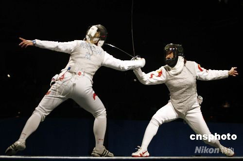 8月11日,北京奧運(yùn)會女子花劍個(gè)人1/16決賽在北京國際會議中心擊劍館舉行,中國選手張蕾(右)以15:8的成績戰(zhàn)勝波蘭選手瑪烏戈熱塔·沃伊科夫亞克,成功晉級。圖為張蕾在比賽中。 中新社發(fā) 盛佳鵬 攝