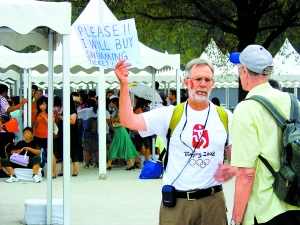 是我第六次到國外看奧運(yùn)會,如果沒有看成比賽就太遺憾了。”而來自洛杉磯的Paul則舉著自己一張射箭的票和一張舉重的票想要換一張體操比賽的票。“我喜歡看奧運(yùn)會,但是你知道北京奧運(yùn)會的票真難買啊,所以我就先買了一些別的,準(zhǔn)備換我喜歡的項(xiàng)目門票來看!10分鐘過去了,Paul還是一無所獲,因?yàn)轶w操也是非常熱門的賽事。最終,Paul將這兩張門票原價轉(zhuǎn)讓給了一位女士,“能讓中國姑娘去看她喜歡的比賽我也挺高興的,我打算明天再來碰碰運(yùn)氣!盤aul笑著告訴記者。