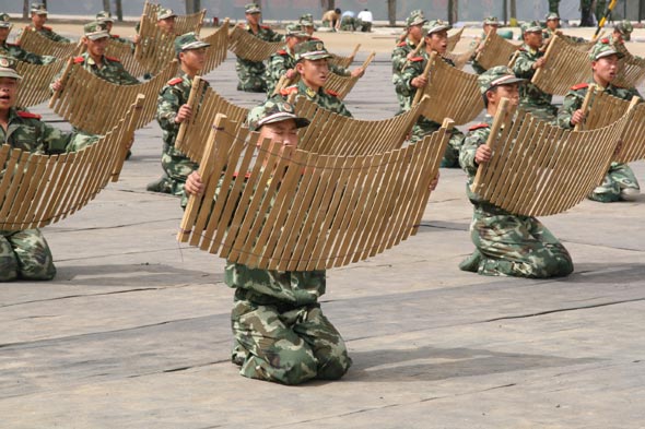 “我們前四個八拍動作取名為“禮之用,和為貴”,一開場就要把古代文人的氣質(zhì)淋漓盡致地刻畫出來,要高傲,要自然,要放松,所有軍人姿態(tài)都要改過來……”第一天,導演們的一串“連環(huán)炮”就讓激情昂揚的參演官兵傻了眼。