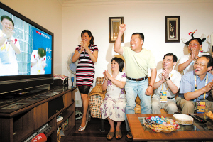 看火亮比賽緊張嗎?火志剛瀟灑地說(shuō):“不緊張。人多就不緊張了。”其實(shí),比賽剛開(kāi)始時(shí)他緊張得不得了;鹆梁土周S前幾輪比賽,火志剛和妻子張愛(ài)英一笑也不笑?吹交鹆梁土周S完成最后的精彩一跳,大家頓時(shí)一陣歡呼,家里的電話也立刻響了起來(lái),但火亮的父母被記者團(tuán)團(tuán)圍住,根本無(wú)暇接聽(tīng)。