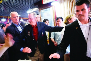 昨天中午11時許,美國總統(tǒng)布什的父親和女兒造訪秀水街。數(shù)十名身材高大的貼身保鏢“陣容強(qiáng)大”地護(hù)衛(wèi)在左右。