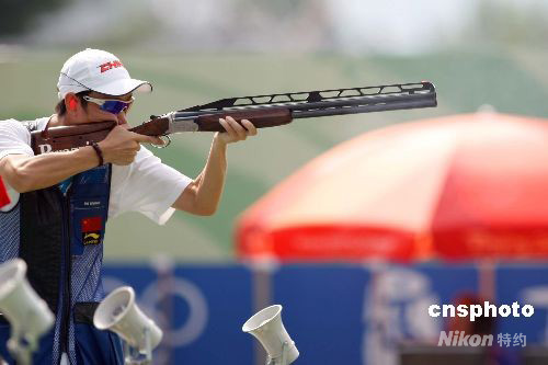 8月12日,北京奧運(yùn)會男子飛碟雙多向決賽在北京射擊館進(jìn)行,中國選手胡斌淵以資格賽第四的身份進(jìn)入決賽,以184中獲得銅牌。美國選手格倫·埃勒以190中獲得金牌,意大利選手弗朗切斯科·達(dá)尼埃洛以187中獲得銀牌。圖為胡斌淵在比賽中。 中新社發(fā) 盛佳鵬 攝