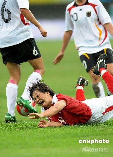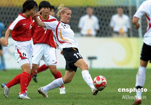 8月12日下午,奧運(yùn)女足小組賽進(jìn)行到第三輪,朝鮮女足和德國隊(duì)的較量在天津“水滴”體育場(chǎng)進(jìn)行,德國隊(duì)以1:0勝朝鮮隊(duì)。中新社發(fā) 陳文 攝