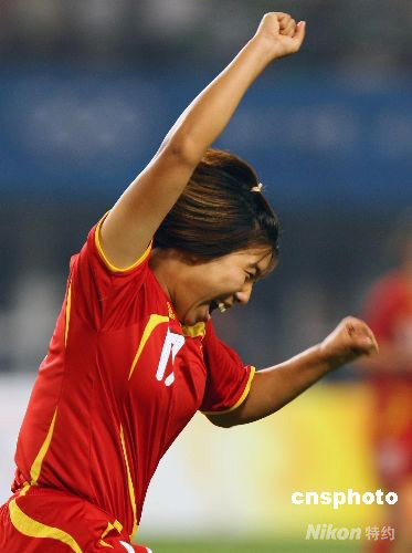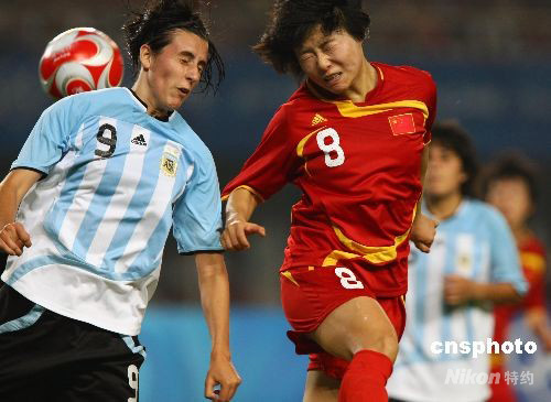 8月12日,北京奧運(yùn)會(huì)女足預(yù)賽,中國(guó)對(duì)阿根廷的比賽在秦皇島奧體中心舉行,中國(guó)女足以2:0戰(zhàn)勝阿根廷女足,以小組第一身份出線。中新社發(fā) 劉新 攝