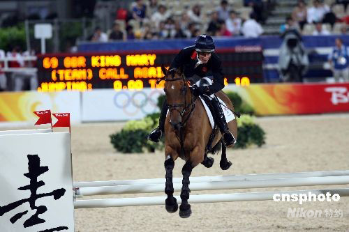 圖為獲得奧運(yùn)馬術(shù)三項賽團(tuán)體賽銅牌的英國選手瑪麗·金飛躍障礙。