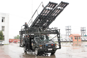 特警突擊車,又稱反恐突擊車或是快速升降車。由于這輛新型的特警裝備車能夠根據需要實施變形,特警們更喜歡稱此車為“特警汽車人”。突擊車由底盤和多功能梯組成,多功能梯采用模塊化結構設計,不但可以安裝在多種底盤平臺上,而且可以實現(xiàn)不同的戰(zhàn)術組合。靈活多變的坡面、梯子、越障板,可以實現(xiàn)多人、多層次、多方向的高空突破、人質救援、反劫機作戰(zhàn),尤其是此車可以在快速行進中調節(jié)和伸展坡面,完全適應反恐實戰(zhàn)的要求。