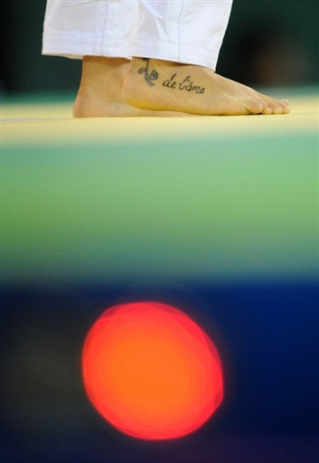 澳大利亞柔道選手,在比賽中露出了紋在美足上的圖案。