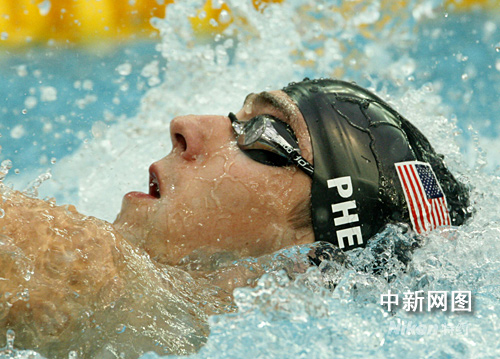 8月15日上午,在國(guó)家游泳中心水立方舉行的北京奧運(yùn)會(huì)男子200米混合泳中,美國(guó)選手菲爾普斯續(xù)寫神話,以1分54秒23的成績(jī)打破由他自己保持的1分54秒80的世界紀(jì)錄,收取他在本屆奧運(yùn)會(huì)的第6枚金牌,也是他奪取的奧運(yùn)會(huì)第12塊金牌。中新社發(fā) 杜洋 攝