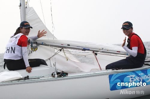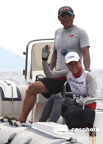 中國英凌級選手在海上降帆等待比賽,顯得很輕松。