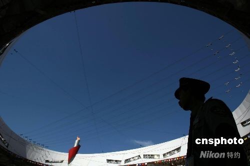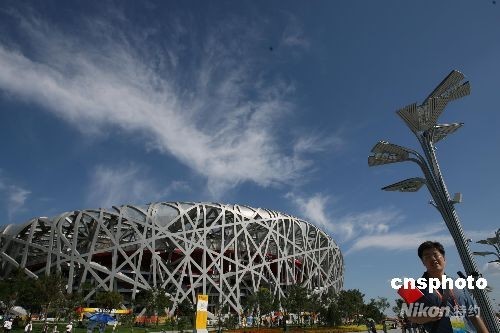 8月15日,北京一掃連日陰霾,展現(xiàn)藍(lán)天白云天氣。當(dāng)日,北京奧運(yùn)會(huì)田徑比賽拉開帷幕。中新社發(fā) 武仲林 攝