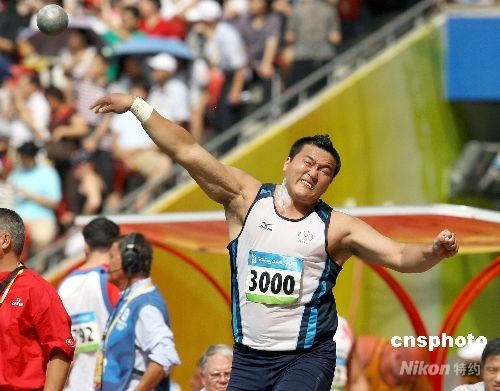 8月15日,北京奧運(yùn)男子鉛球資格賽在國家體育場舉行,中華臺北隊(duì)張銘煌力拼前八強(qiáng)。中新社發(fā) CNAsports 攝