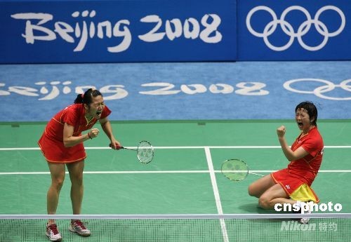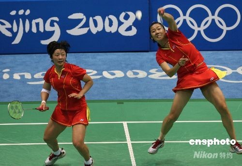 8月15日晚,中國組合魏軼力、張亞雯在北京奧運(yùn)會羽毛球女子雙打銅牌爭奪戰(zhàn)中以2比0戰(zhàn)勝日本組合前田美順、末綱聰子,奪得銅牌。中新社發(fā) 武仲林 攝