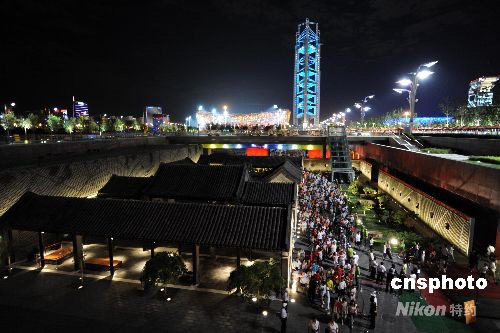8月16日凌晨,奧林匹克公園夜晚人流如織。中新社發(fā) 廖攀 攝