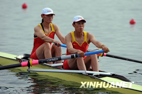 8月16日,中國選手吳優(yōu)/高玉蘭在順義奧林匹克水上公園進(jìn)行的北京奧運會賽艇女子雙人單槳A組決賽中奪得亞軍。新華社記者王雷攝