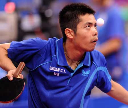 在男子乒乓球團(tuán)體比賽中,中華臺(tái)北代表隊(duì)1比3敗給韓國(guó)。其中唯一得勝點(diǎn)由莊智淵獲得。(上圖)