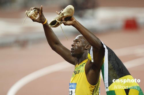8月16日,牙買加“奇人”博爾特最終用實力證明他是世界上跑得最快的人。當晚,他僅用了9秒69就跑到了100米跑道的終點,并刷新了自己2個多月前創(chuàng)下的9秒72的世界紀錄,一舉奪得北京奧運會男子100米冠軍。 中新社發(fā) 盛佳鵬 攝