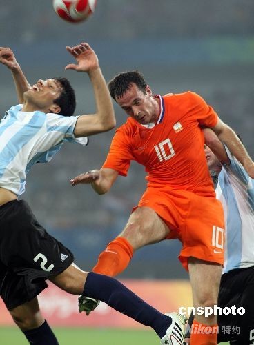 8月16日,北京奧運(yùn)會(huì)男足阿根廷VS荷蘭的比賽在上海體育場進(jìn)行。經(jīng)過120分鐘激戰(zhàn),荷蘭隊(duì)1:2不敵阿根廷無緣四強(qiáng)。中新社發(fā) 湯彥俊 攝