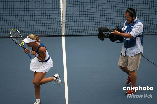 8月17日,在奧運(yùn)會(huì)網(wǎng)球女單決賽中,俄羅斯名將杰緬季耶娃2-1逆轉(zhuǎn)擊敗隊(duì)友薩芬娜,贏得冠軍。另一名俄羅斯選手茲沃納列娃奪得銅牌,中國選手李娜最終獲得女單第四名。中新社發(fā) 武仲林 攝